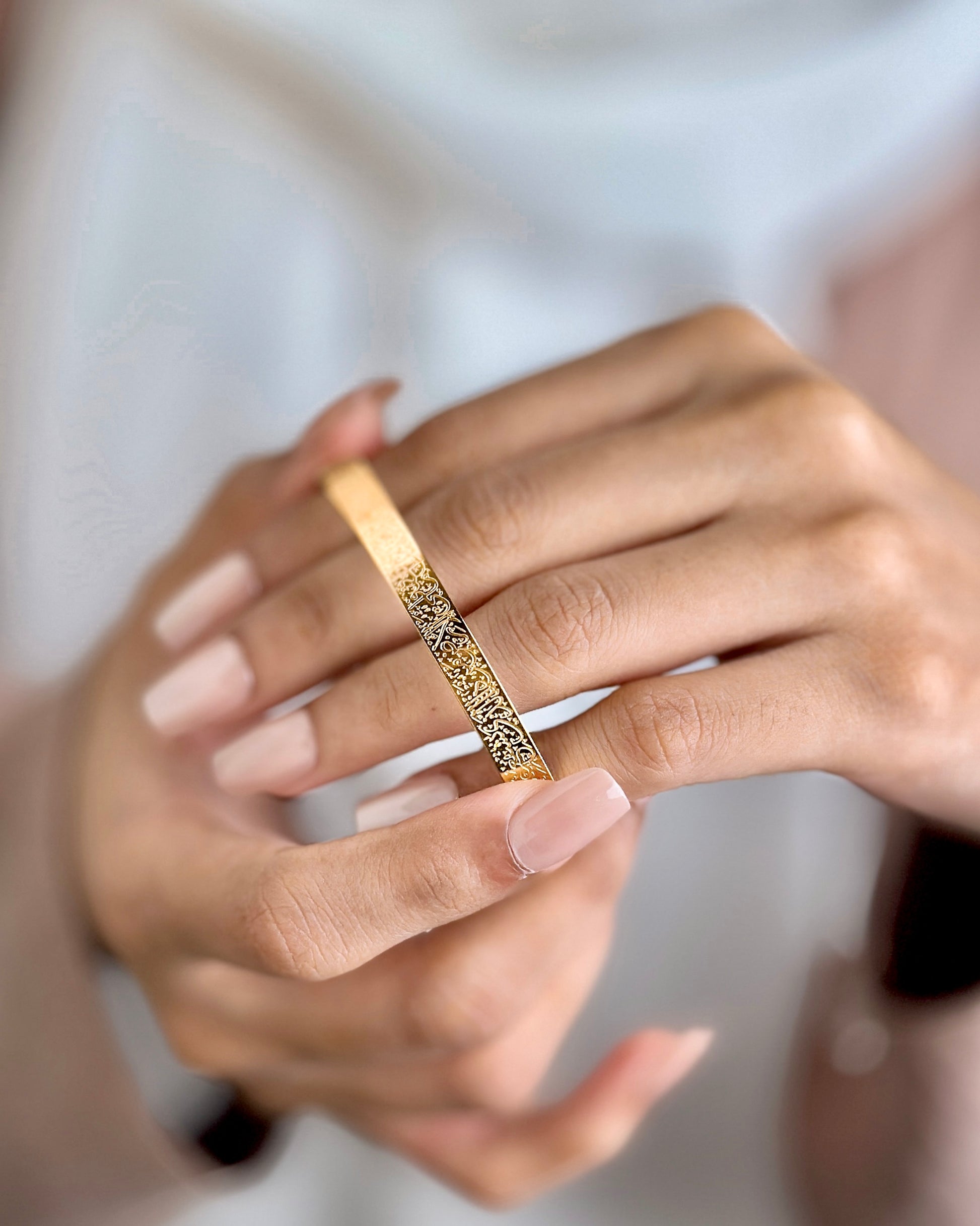 Our newly designed Ayatul Kursi Cuff, regarded as the most powerful verse in the Qur'an, Ayatul Kursi is known to provide protection and safety. We hope this serves as a reminder to keep this verse close to your heart.